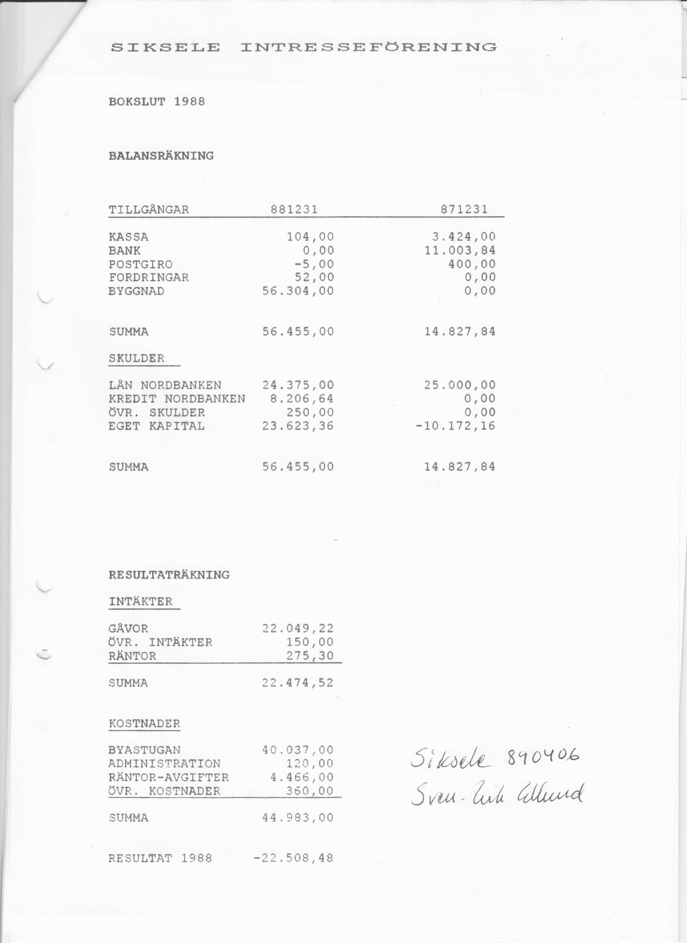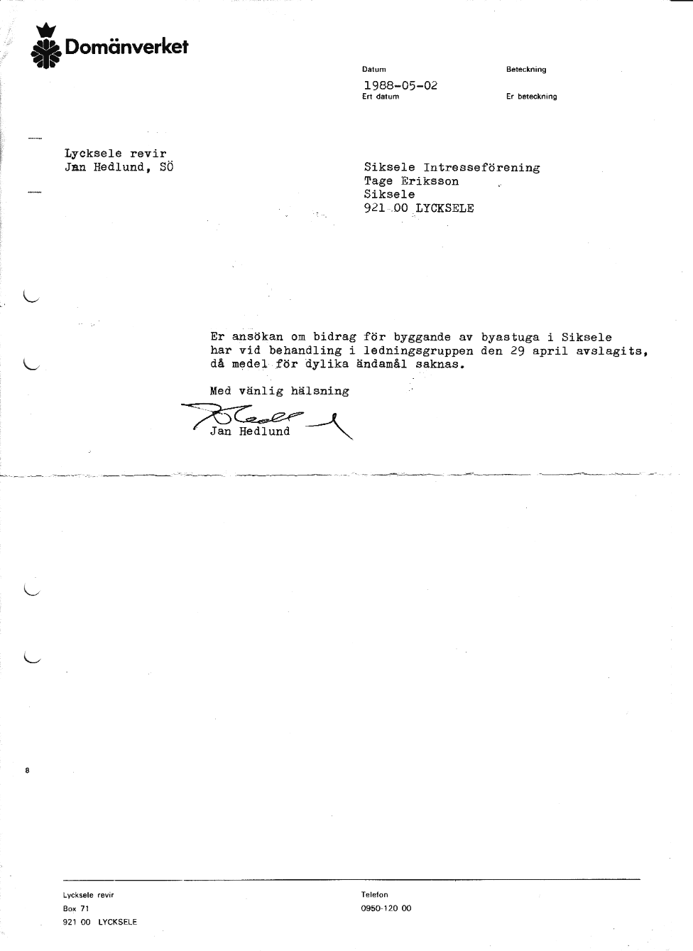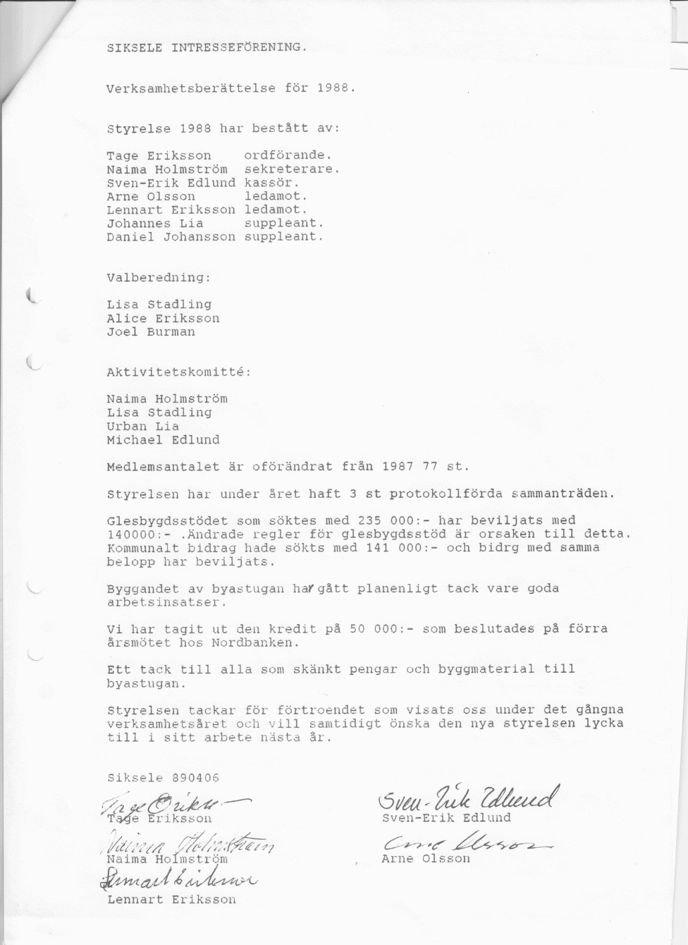 1988 - Siksele Intresseförening