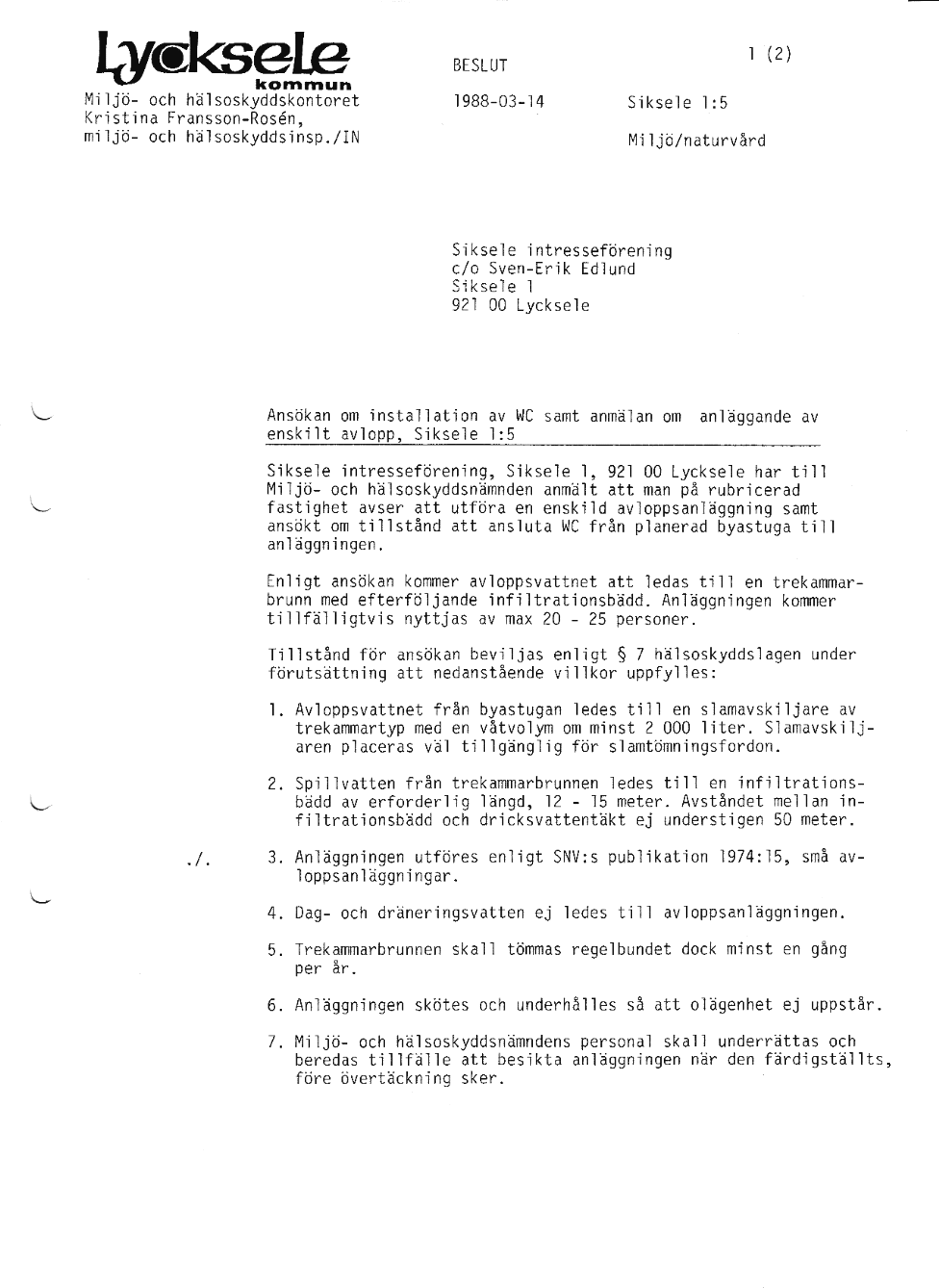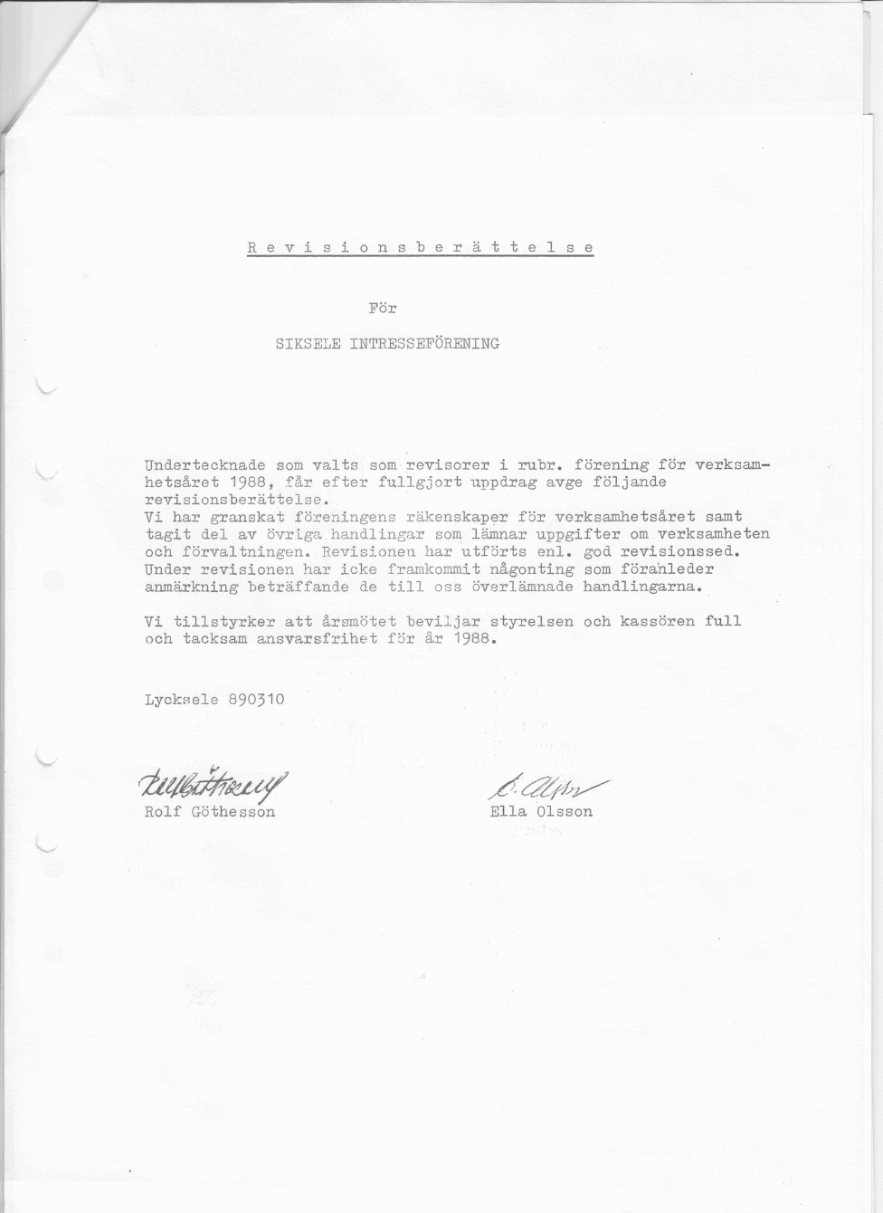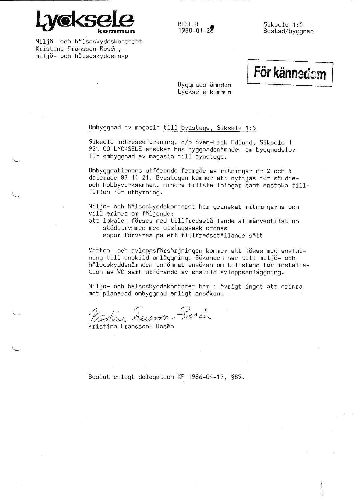 1988 - Siksele Intresseförening