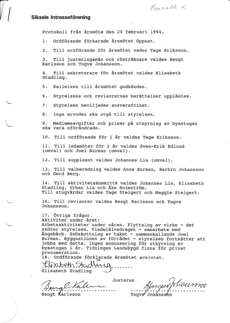 1994 - Siksele Intresseförening